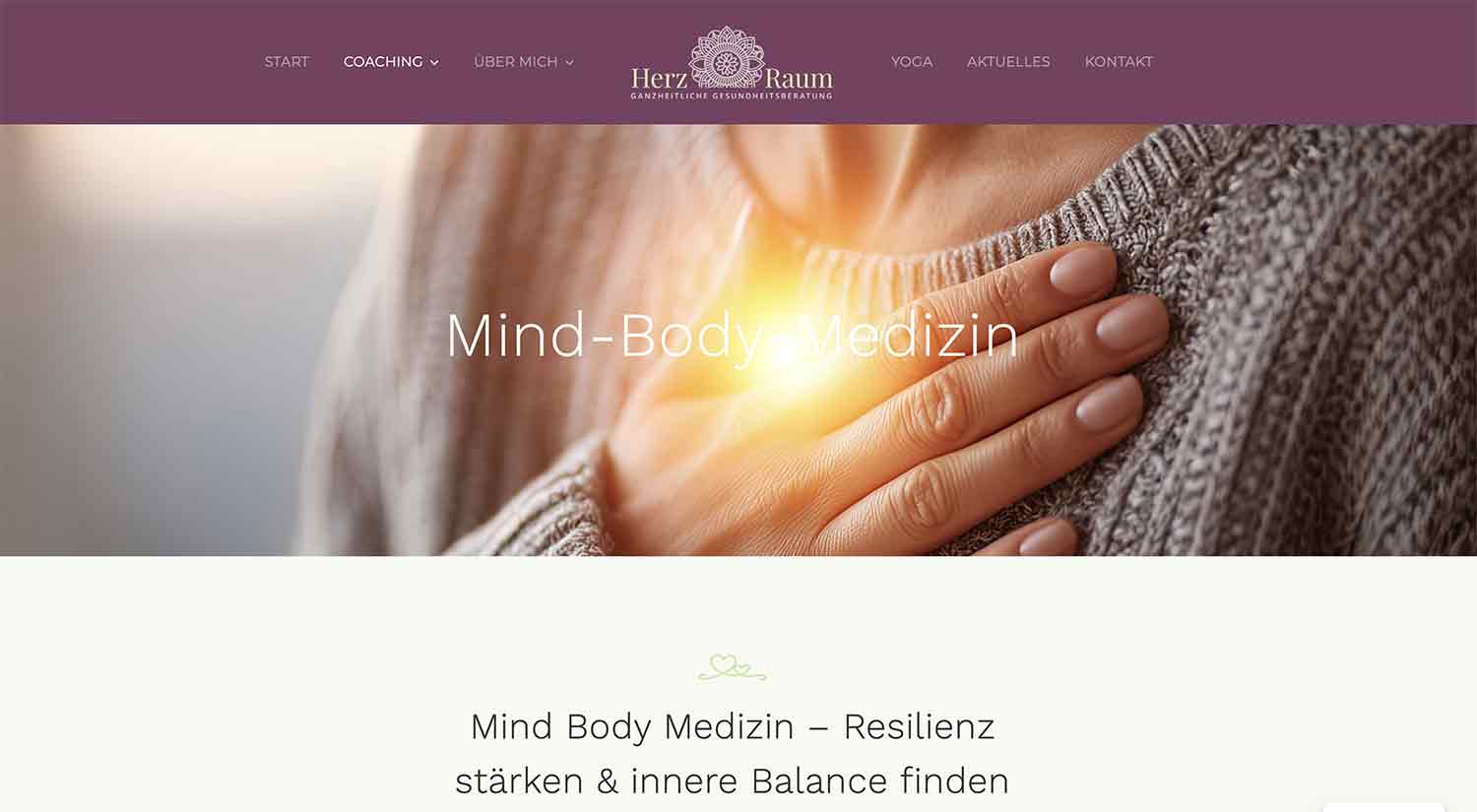 Website und Logodesign verbinden Gesundheitsberatung, Yoga-Studio und NLP-Coaching in einem harmonischen Gesamtkonzept.