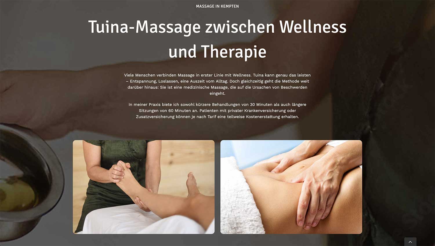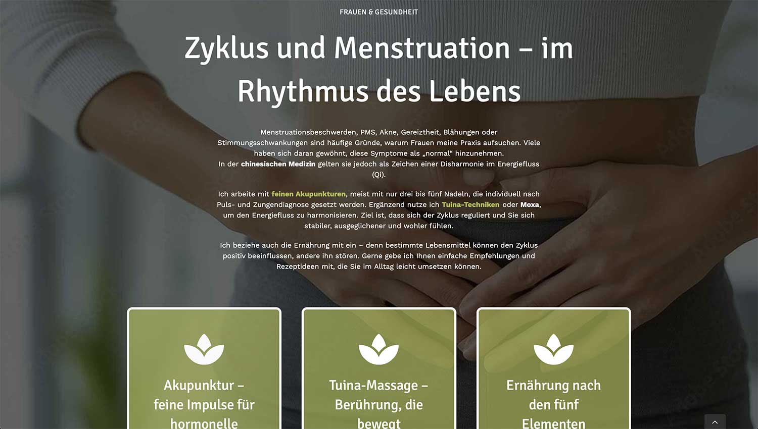 Der Relaunch der Website verbindet ein ruhiges, natürliches Erscheinungsbild mit einer modernen technischen Basis. Alle Texte wurden von TheraDesign vollständig ausgearbeitet, suchmaschinenoptimiert und rechtlich sensibel formuliert. Die Seite bietet eine klare Struktur für sämtliche Behandlungsschwerpunkte, eine integrierte Online-Terminbuchung, ein Kontaktformular sowie einen Blog für weiterführende Inhalte.