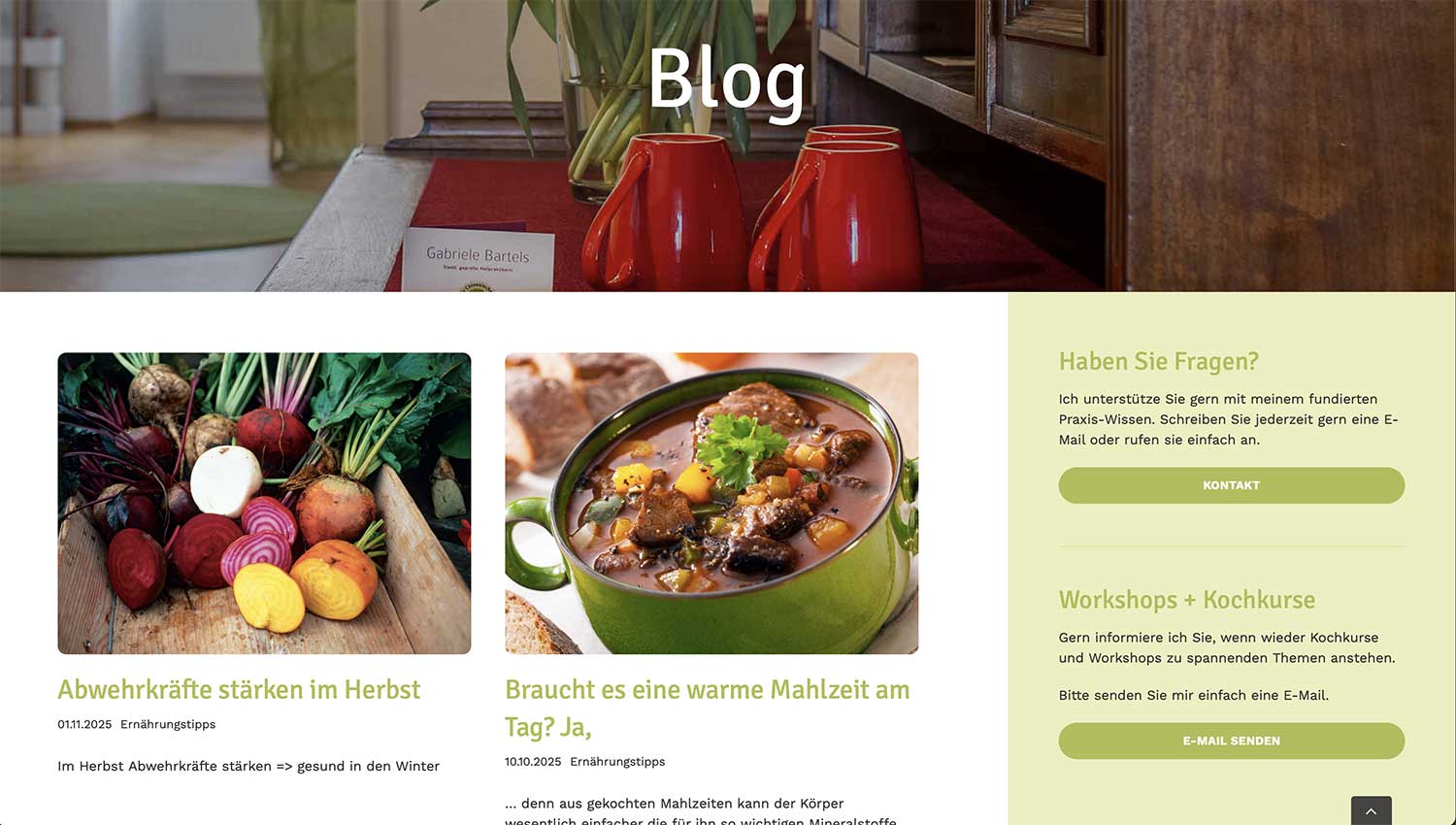 Für Heilpraktikerin Gabriele Bartels entstand ein warmes, professionelles Webdesign für ihre Heilpraxis, das ihre Praxis authentisch zeigt und Besucher klar durch alle Angebote führt.
